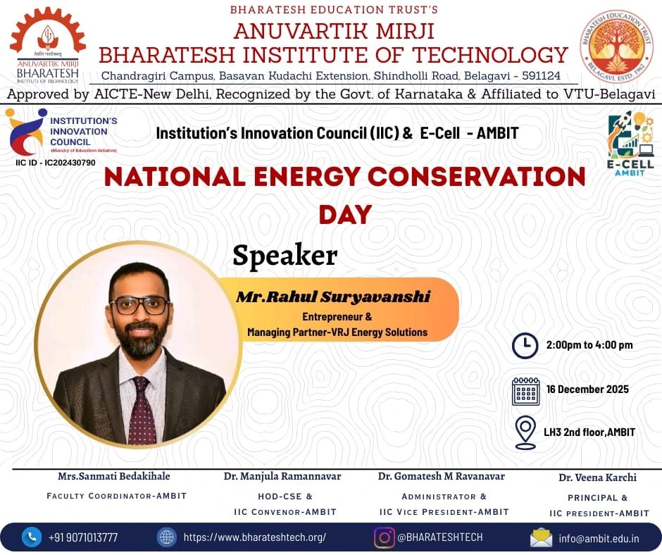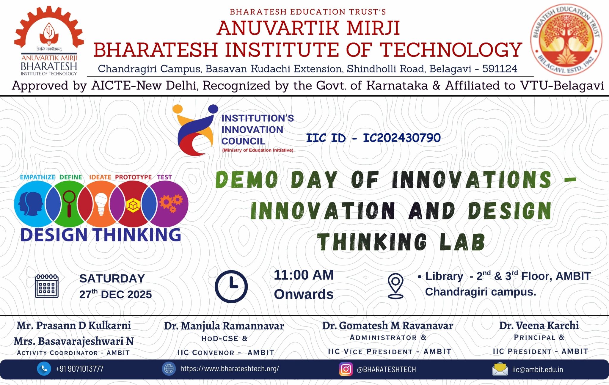 Admissions to Bachelor of Engineering (B.E.) program at Anuvartik Mirji Bharatesh Institute of Technology opens from the academic year 2025-2026. Students studying in Std. 12th (PUC II) in recognized colleges with valid scores in the same can apply for the Common Entrance Test (CET) of the Karnataka Govt.